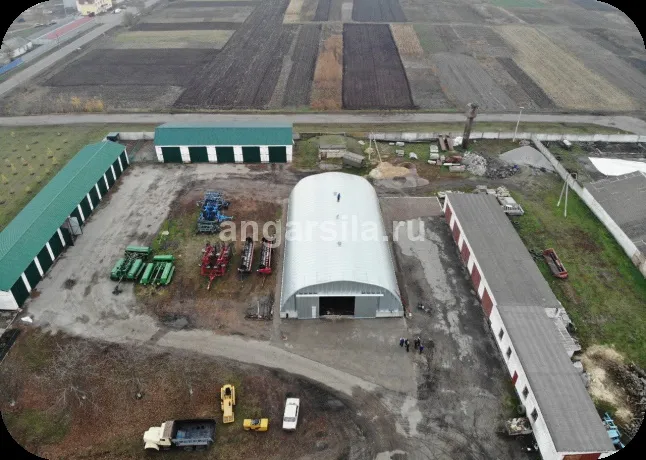 - Тентовые арочные ангары, которые часто применяются для временного хранения сельскохозяйственной техники и урожая. Их конструкция позволяет быстро разбирать и перемещать ангар в новые места.